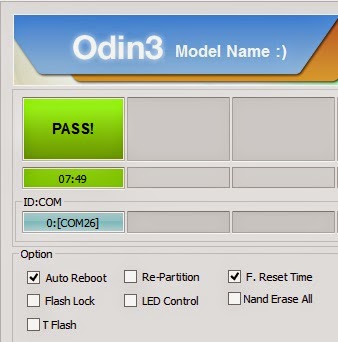 9- بعد اكتمال العملية تظهر كلمة PASS بخلفية خضراء وتتم إعادة تشغيل الجوال تلقائياً