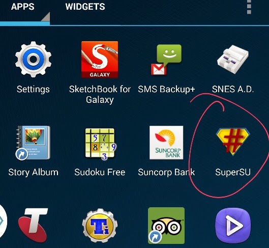 بعد اتباع هذه التعليمات وللتأكد من تركيب الروت بنجاح , نفتح قائمة البرامج لنشاهد برنامج مدير الروت SuperSU